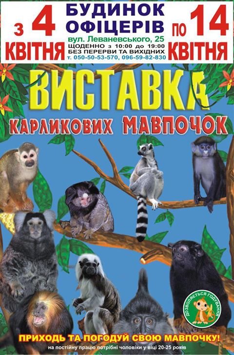 З 4 КВІТНЯ в приміщенні «БУДИНКУ ОФІЦЕРІВ» буде проходити"ВИСТАВКА КАРЛИКОВИХ МАВПОЧОК".