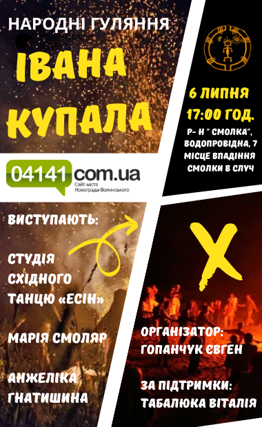 Ну невже таке свято у Новограді-Волинському залишиться непомітним серед мешканців? Вже традиційно для нашого міста найбільш масштабні народні гуляння в районі "Джерела", біля пішохідного мосту (район впадання річки Смолка в річку Случ, мікрорайон Смолка).