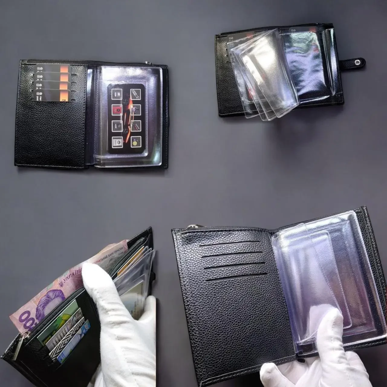 - Функціональність. Усередині можна зберігати не тільки посвідчення чи техпаспорт, а й картки, гроші, візитки.