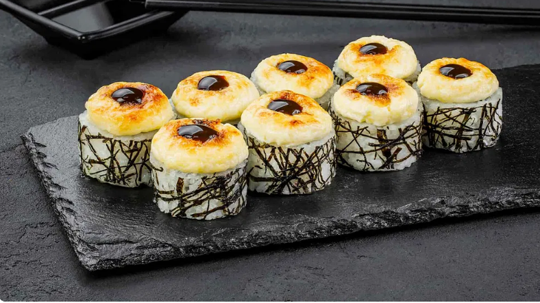 Одна з найцікавіших новинок у меню – суші-бургер. Замість традиційної булочки використовується пресований рис, а начинкою є свіжий лосось, овочі та ніжний соус. Це унікальне поєднання японської традиції та західного формату подачі. Суші-бургер з лососем виглядає ефектно й водночас дуже ситний.