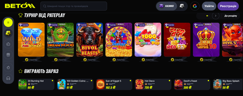 Говорячи про ігровий контент, слід відзначити, що тут є все, розпочинаючи від класичних слотів і аж до live-формату. Beton пропонує широкий вибір напрямів, серед яких: