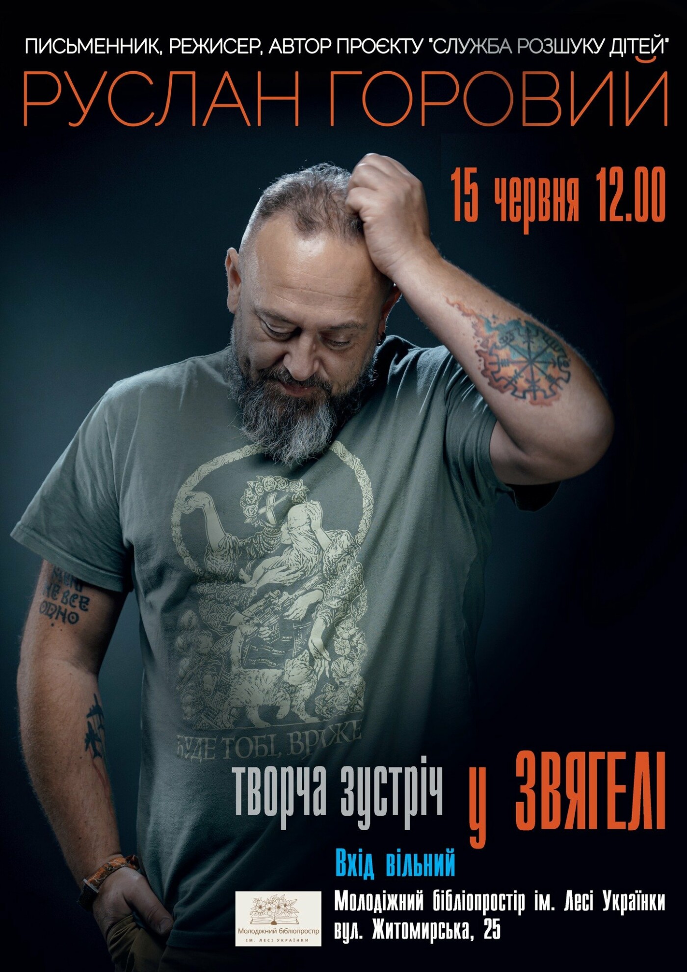 У Звягель завітає відомий український письменник, волонтер, режисер Руслан Горовий. Про таке йдеться у повідомленні Звягельської бібліотеки.