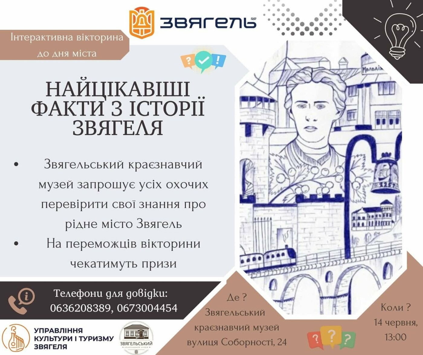 – Запрошуємо пройти захоплюючу вікторину «Найцікавіші факти з історії Звягеля»