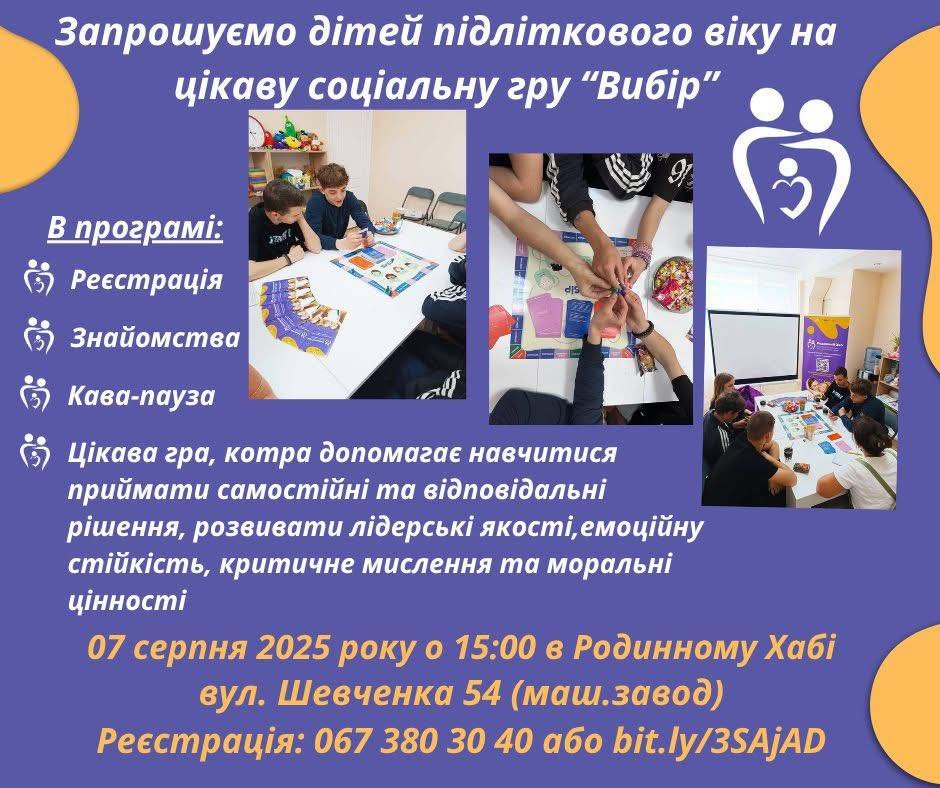 7 серпня о 15:00 Соціальна гра «Вибір»