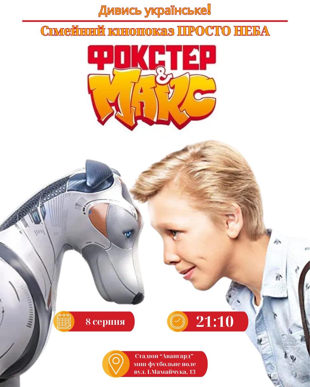 Дивитимуться фільм «Фокстер & Макс». Це українська пригодницька стрічка про школяра Макса, який знаходить графіті-собаку з суперздібностями. І разом вони стають командою.