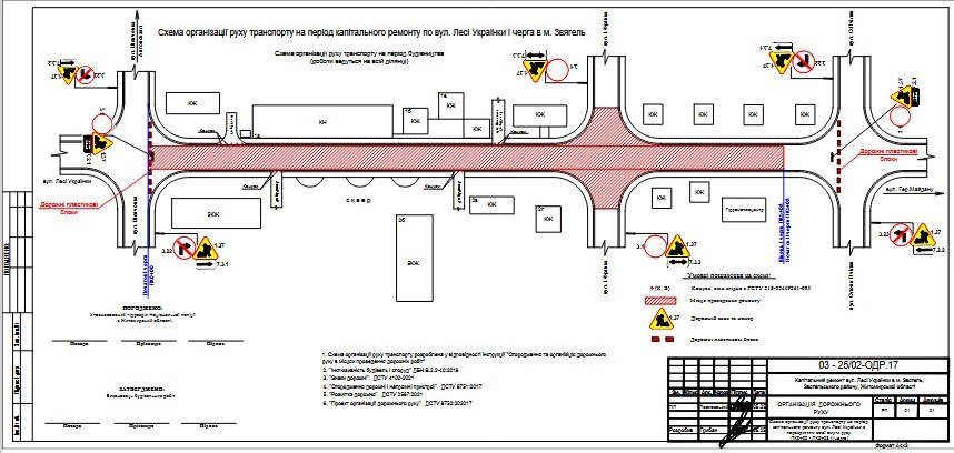 У Звягелі 19 серпня розпочнуть перший етап капітального ремонту вул. Лесі Українки, тож через це обмежать рух автотранспорту на відрізку від вул. Шевченка до вул. Олени Пчілки.