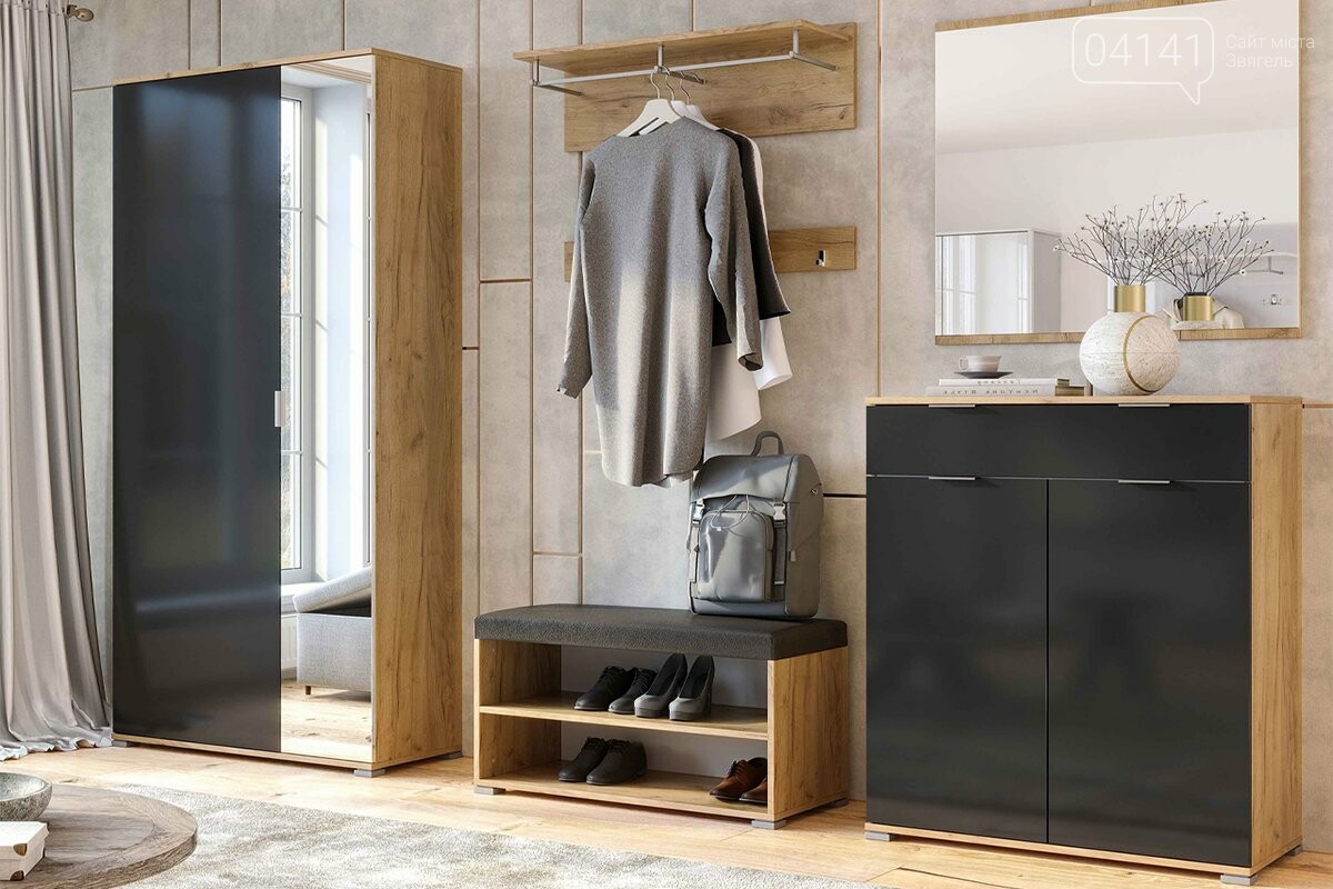 - Меблі для коридору. У нас Ви знайдете все необхідне для облаштування вхідної зони: від готових передпокоїв, що поєднують в собі шафу, вішалку і тумбу, до окремих меблів. Підберіть містку тумбу для взуття, щоб завжди був порядок, стильну вішалку для верхнього одягу та велике дзеркало. А щоб додати комфорту, поставте елегантну м'яку банкетку, на яку буде зручно присісти, взуваючись.