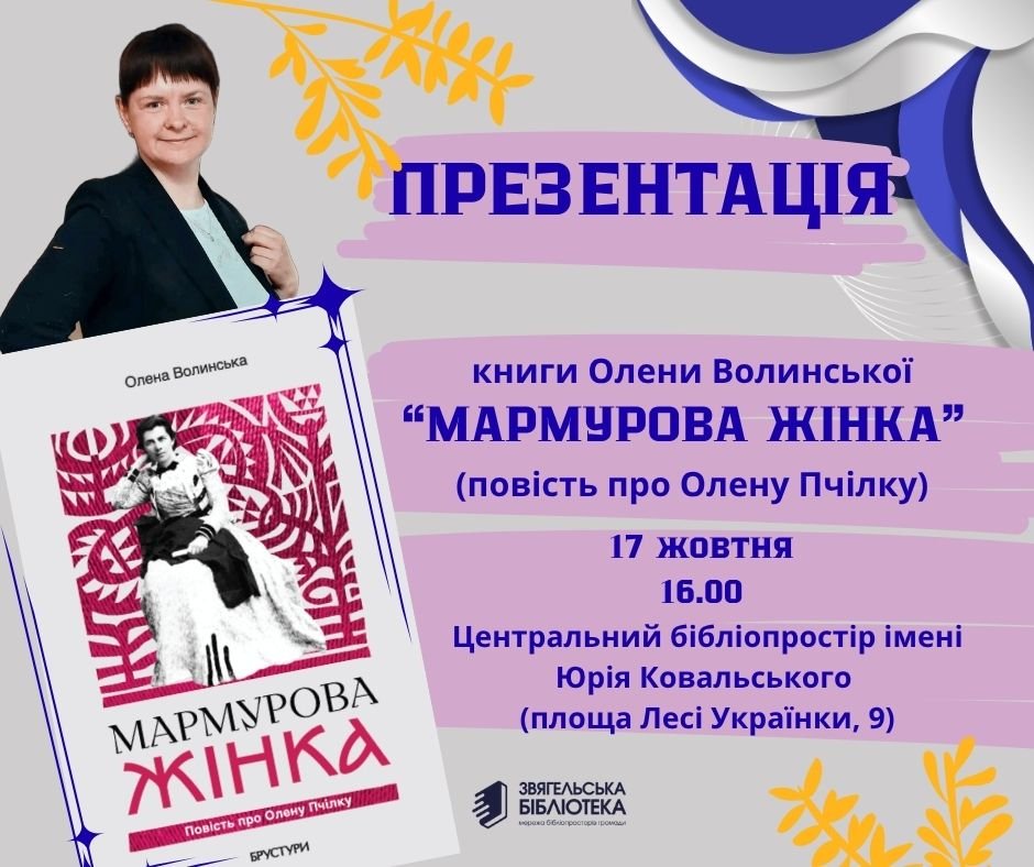 У Звягелі відбудеться презентація нової книги Олени Волинської «Мармурова жінка». Про це йдеться у повідомленні Центрального бібліопростору імені Юрія Ковальського.