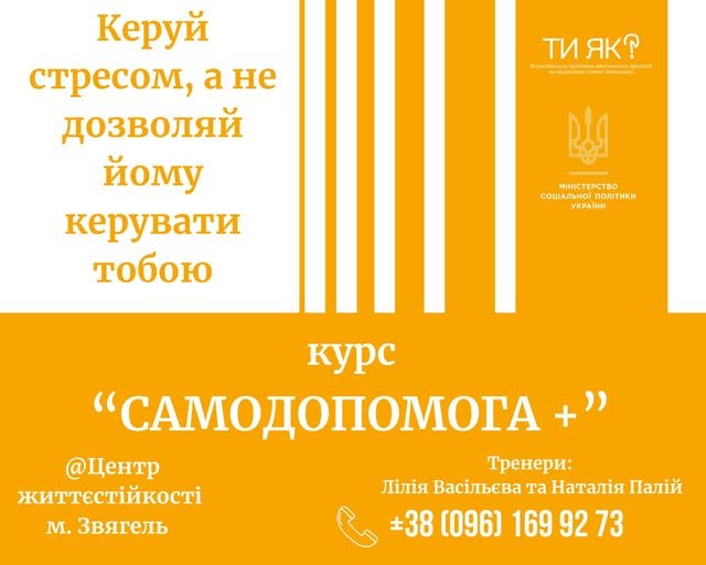 Центр життєстійкості м. Звягель запрошує у групу «Самодопомога Плюс» від ВООЗ: тут безоплатно допоможуть долати стрес та тривогу.