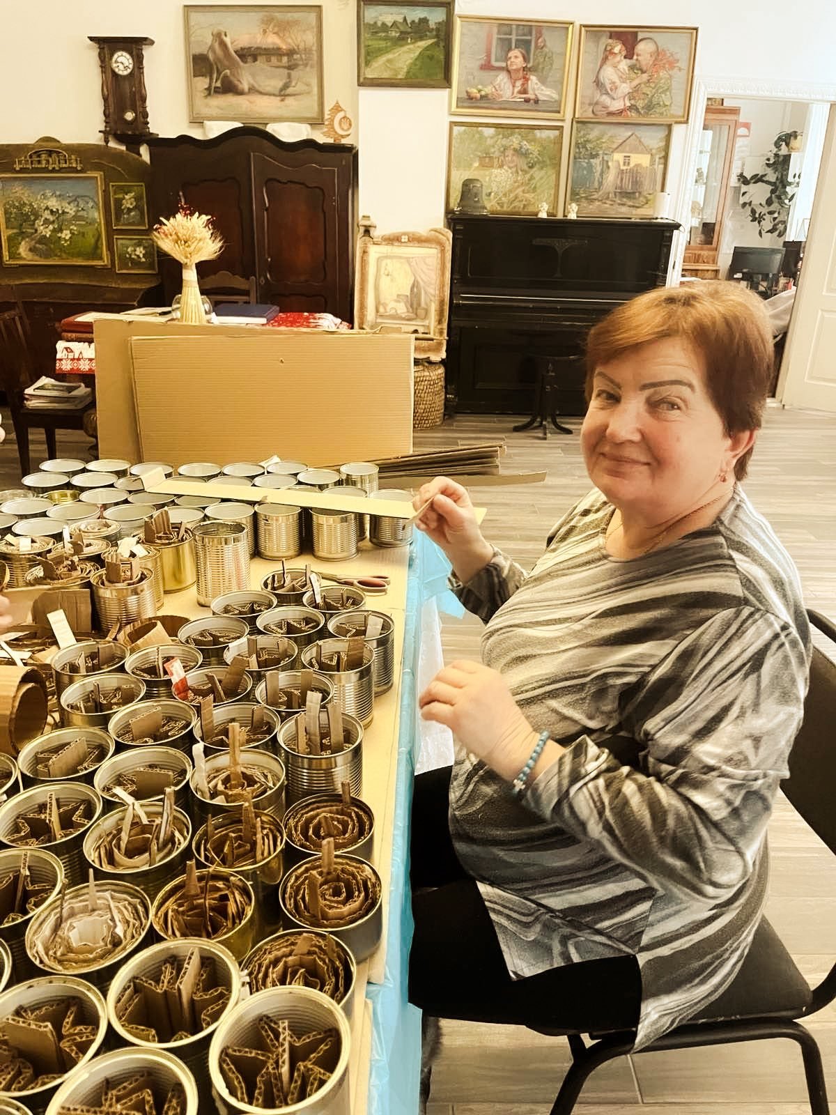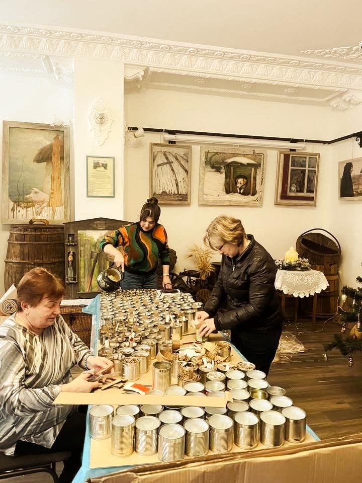 Минулого тижня у Звягельському краєзнавчому музеї рідні полеглих захисників разом з працівницями музею виготовляли окопні свічки із баночок, які принесли небайдужі мешканці громади. Про це йдеться у дописі управління культури і туризму Звягельської міської ради.