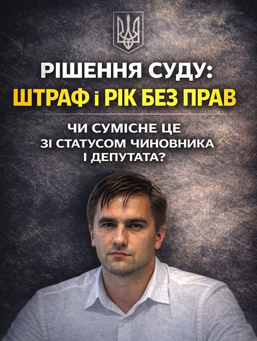 Так, у своєму дописі пан Поліщук зазначає, що 9 лютого 2026 року Звягельський міськрайонний суд Житомирської області у справі №285/225/26 визнав винним Широкопояса Олександра Юрійовича у вчиненні адміністративного правопорушення, передбаченого ч.1 ст.130 КУпАП.