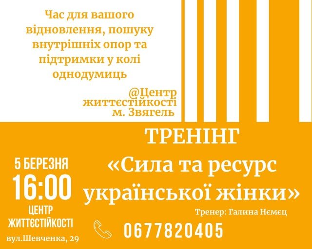 У Звягелі відбудеться тренінг «Сила та ресурс української жінки»