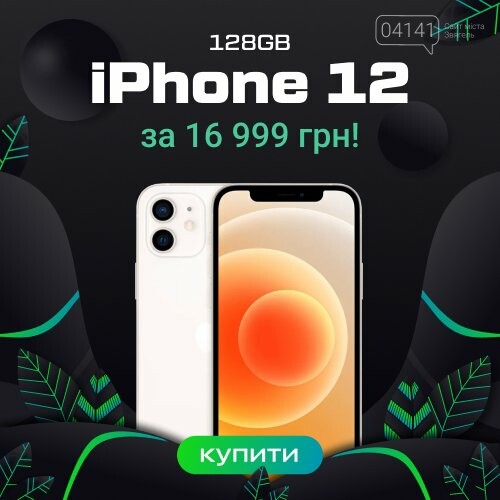 Ловіть унікальну можливість придбати iPhone 12 128GB всього за 16,999 грн! Ексклюзивно тільки у Чорну П'ятницю.